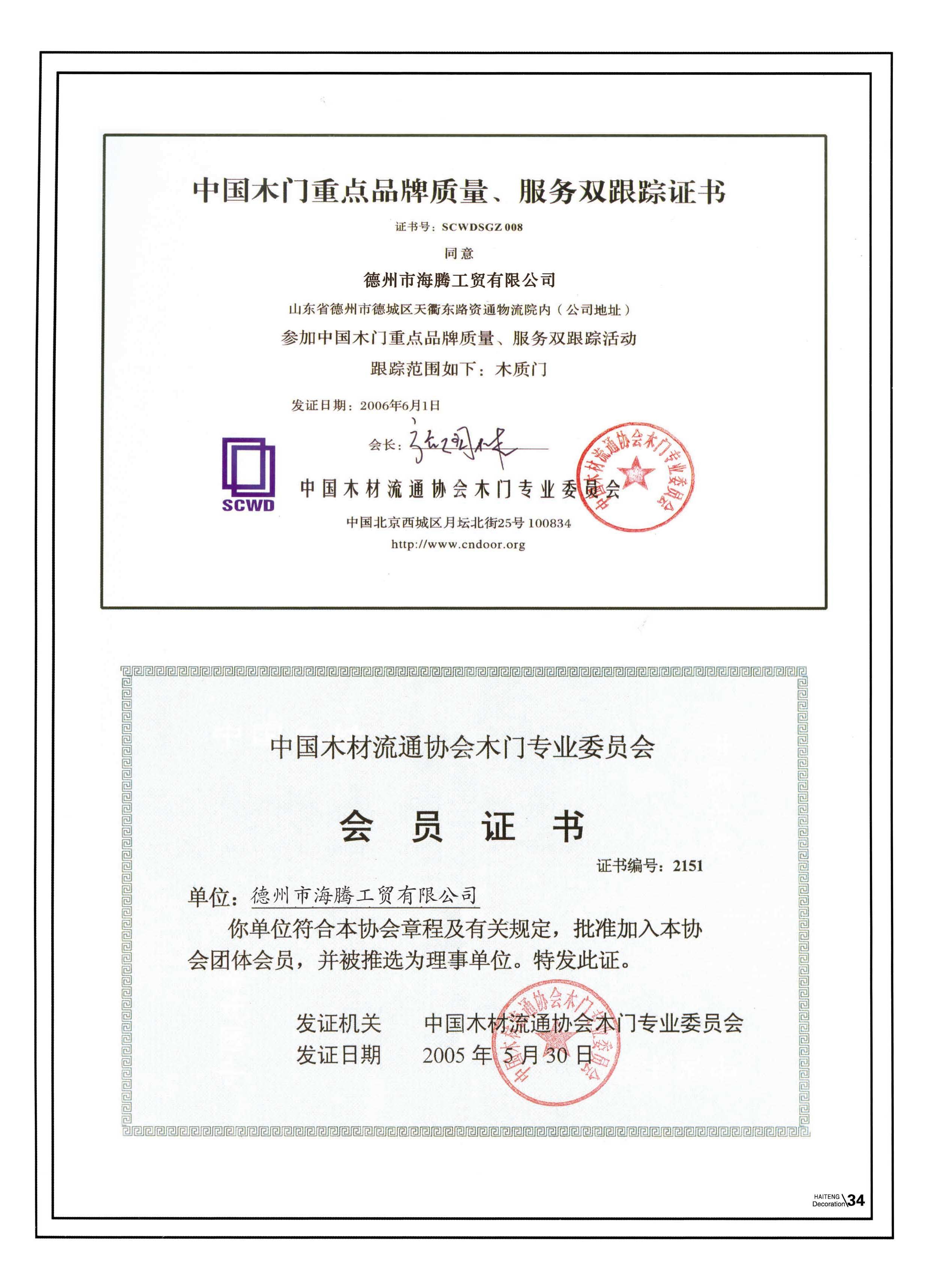中國木材與木制品流通協會木門專業委員會副會長單位,堅持走"專精特新"發展之路。